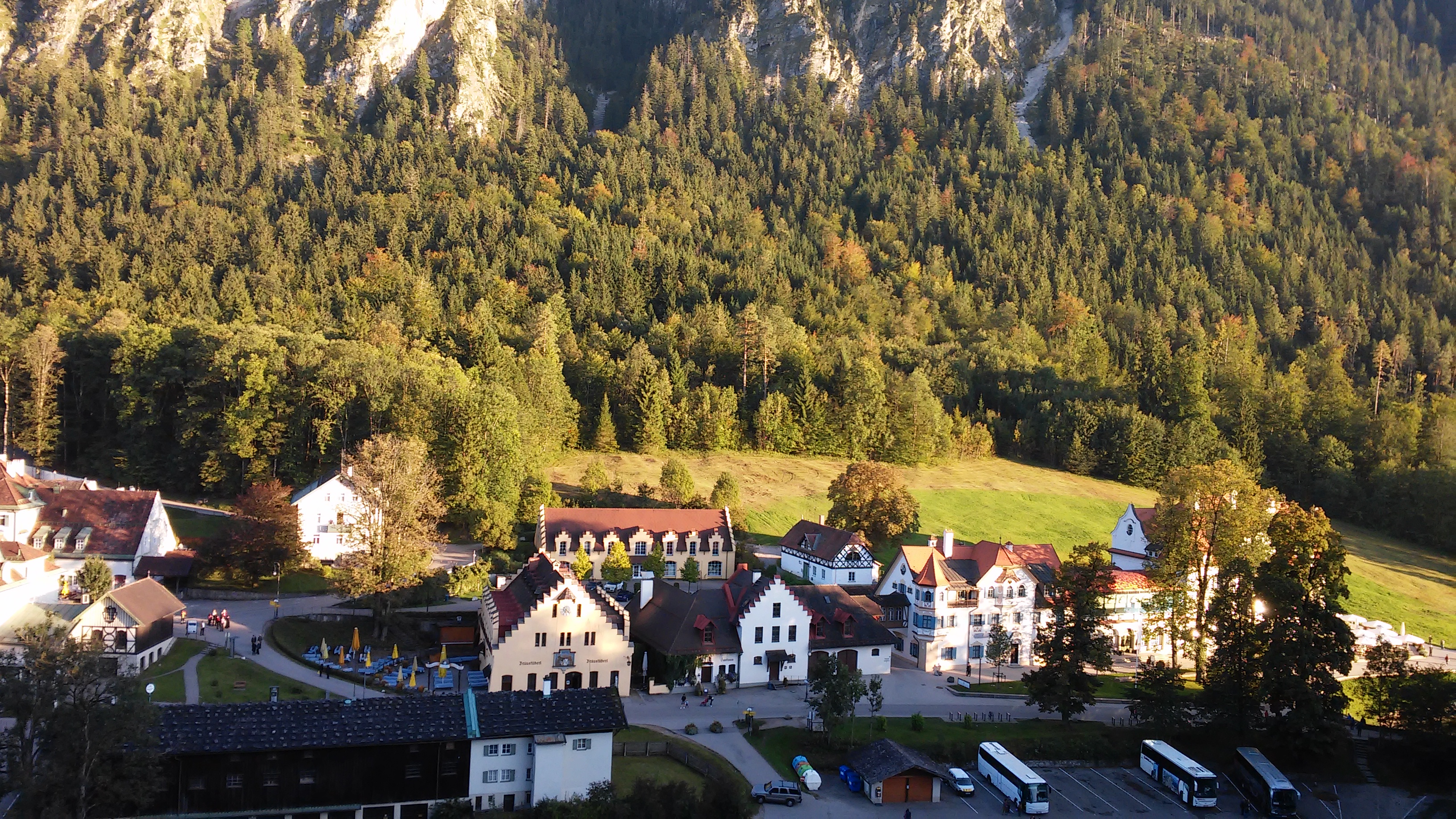 În acest peisaj se încadrează perfect renumitul castel Neuschwanstein, care a fost construit la dorința regelui Ludwig al II și a fost finalizat abia după moartea acestuia. Castelul de poveste este unul dintre cele mai vizitate obiective turistice din Germania și deși foarte aglomerat, în special în perioada caldă a anului, merită numaidecât o vizită. Germania are foarte multe castele și cetăți și după ce ai văzut vreo 10-20 din ele ai impresia că toate sunt la fel. Neuschwanstein este diferit, atât la exterior cât și interior.