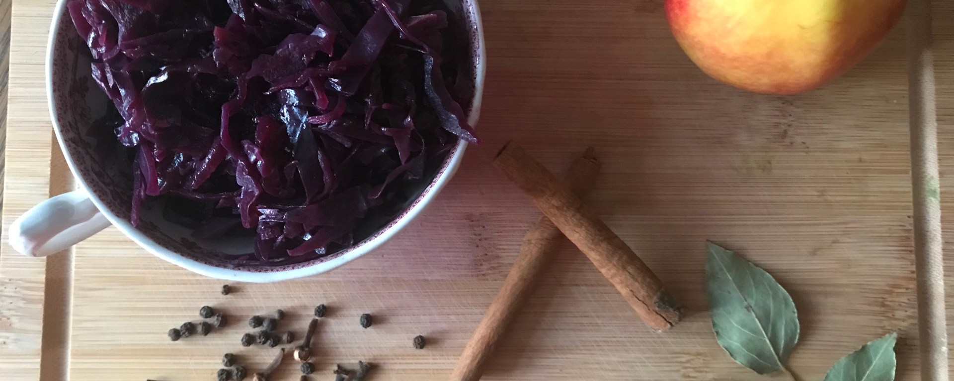 Varza roșie (Rotkohl sau Blaukraut) este obligatorie în meniul de Crăciun în Germania. În famila soțului meu se mănâncă în fiecare an în prima zi de Crăciun cu carne de rață sau gâscă și Kloße (un fel de găluști din cartofi, făină și ou). Pe mine tot m-a cucerit și anul acesta am decis să încerc o rețetă acasă. De obicei o cumpăr în borcan și doar o încălzesc. Tot e bună, dar dacă vrei să experimentezi puțin, poți adapta rețeta clasică după gustul tău. Varza roșie e mai gustoasă dacă o gătești cu o zi-două înainte și doar o încălzești când vrei să o servești.
