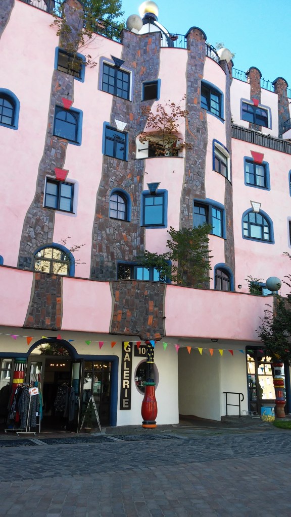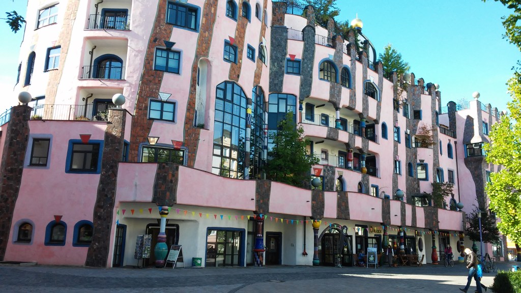 Dacă o să cauți Magdeburg pe web, una din imaginile care cu siguranță o să-ți atragă atenția este o clădire roz, cu o arhitectură mai specială. Aceasta este „Die Grüne Zitadelle”(trad. Cetatea verde), o clădire construită după schițele arhitectului austriac Friedensreich Hundertwasser. Nu mă întrebați de ce e roză dacă îi zice verde. Probabil numele vine de la acoperișul și balcoanele pe care cresc copaci și sunt frumos înverzite cu plante. Prin această clădire arhitectul a vrut să creeze o „Oază pentru umanitate și natură într-o mare de clădiri raționale.” Construcția a fost finalizată după moartea acestuia și este astfel ultima creație concepută și schițată de artist. În interiorul clădirii se află locuințe private, un teatru, un hotel, restaurante și magazinașe. Deși există multe discuții controversate referiror la aplasarea și stilul acestei clădiri în raport cu imaginea de ansamblu a orașului, pentru mine este o explozie de culoare, care emană bucurie și poftă de viață. În orice caz, merită admirată în orice anotimp al anului.