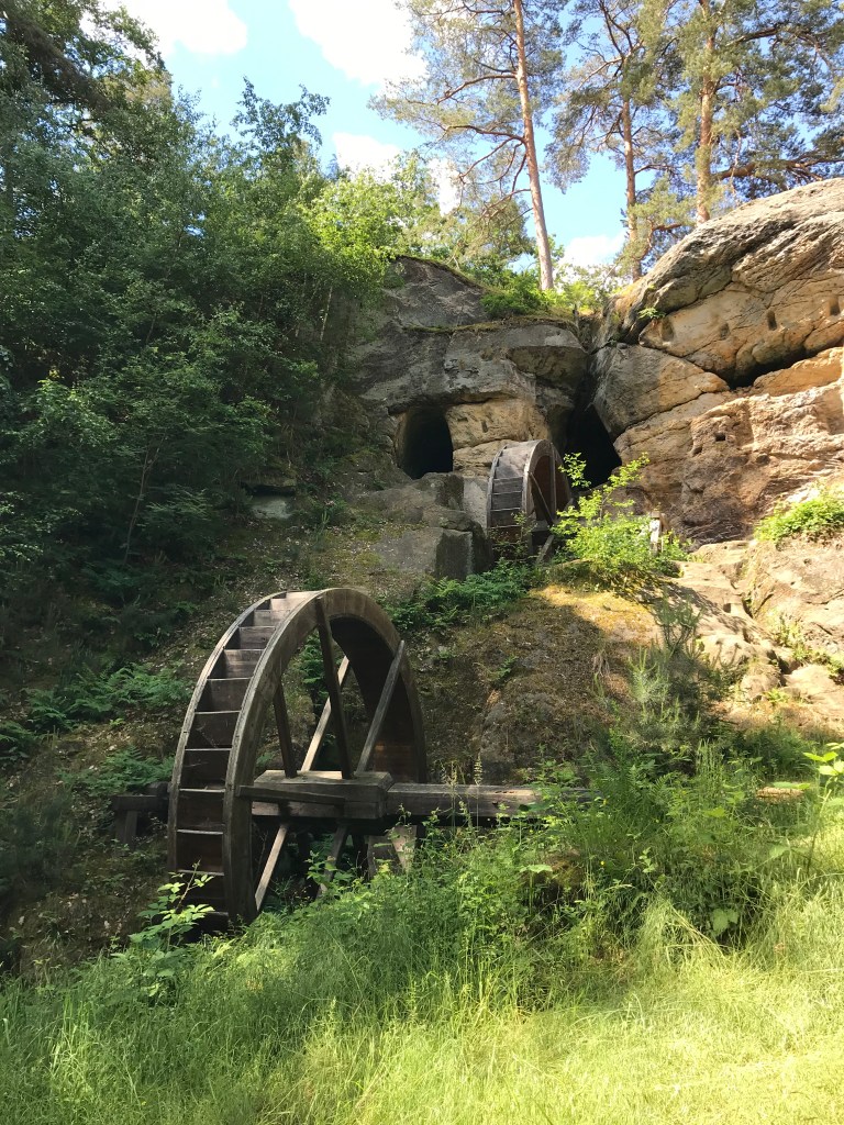 Kleiner Rundweg Sandsteinhöhlen – (Traseul scurt Grotele de nisip). Acesta a fost primul tur pe care l-am făcut singură. Are vreo 5 km și începe în orașul Blankenburg. E ușor și potrivit pentru începători. Pe parcursul acestei drumeții am văzut moara veche Regenstein, Grotele de nisip și ruinele cetății Regenstein.