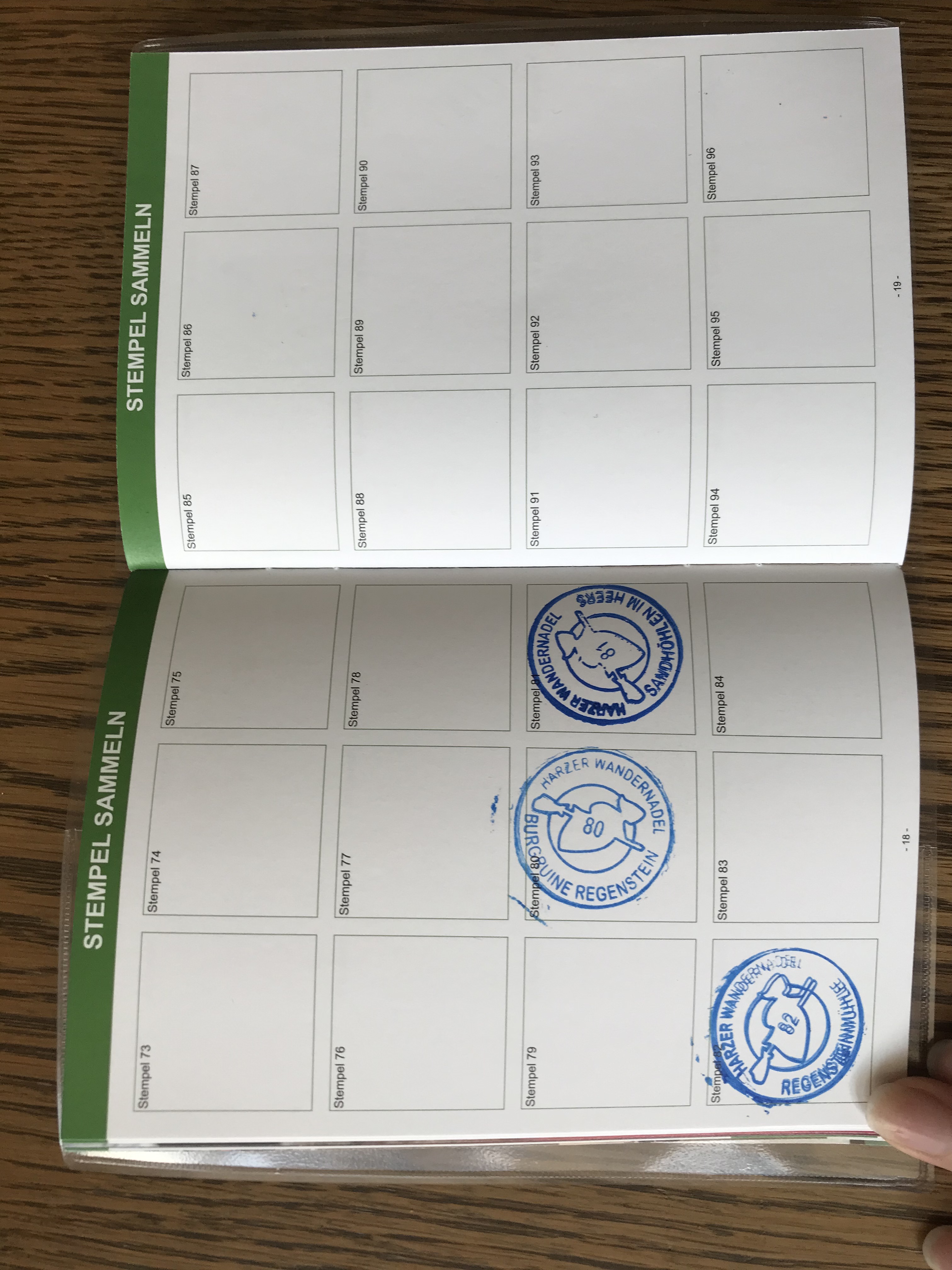 Pentru un plus de motivație am decis să-mi iau un pașaport pentru drumețiile din această regiune – Harzer Wandernadel Wanderpass. În acest pașaport poți aduna 222 de ștampile care sunt amplasate pe diferite trasee, de obicei în apropierea unei atracții turistice. Cei mai harnici drumeți pot să adune mai multe insigne (Harzer Wandernadel) pe parscursul timpului. Prima insignă o poți primi deja după 8 ștampile, iar cu 50 de ștampile poți obține insigna Harzer Wanderkönig (Regele drumețiilor din Harz).