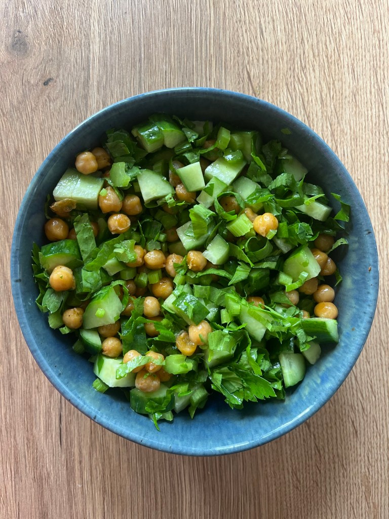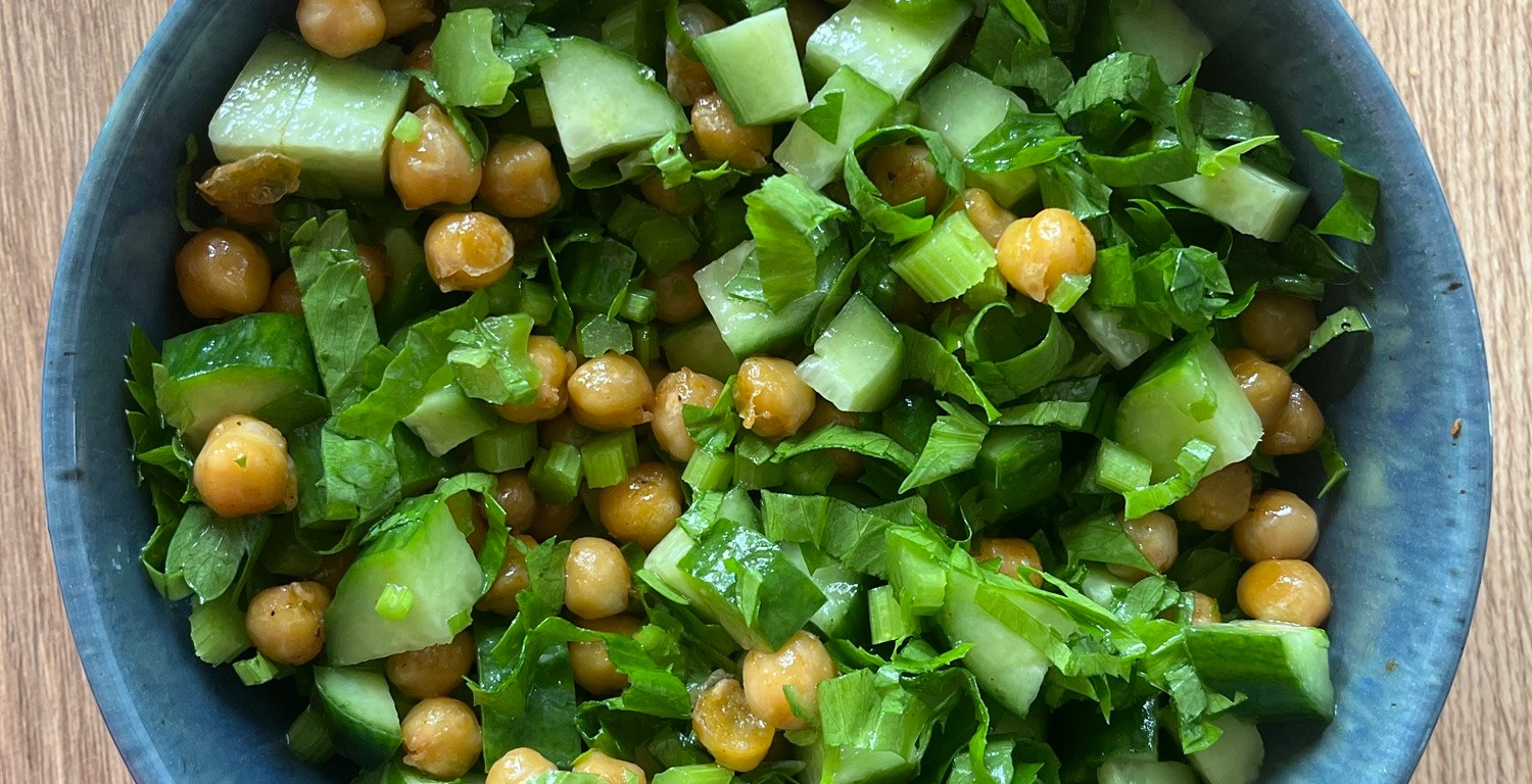 Eu uneori găsesc câte o rețetă de care mă îndrăgostesc și o pregătesc de zeci de ori, până când toată famila se satură de ea. Ultima rețetă este o salată cu năut și castraveți pe care o fac de obicei la cină. Este ușor de gătit cu ingrediente simple și sănătoase.